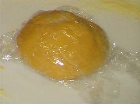 Teig kneten bis homogen, nicht zu trocken machen, es kommt noch Mehl / Griess dazu beim auswallen