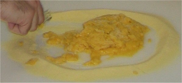 Teig auf dickerer Stufe 3 mal durch die Maschine lassen, mit Griess/Mehl bestäuben, zusammenfallten und dann wieder durch die Maschine lassen. Teigrand darf nicht mehr ausfransen, auf gewünschte Dicke auswallen