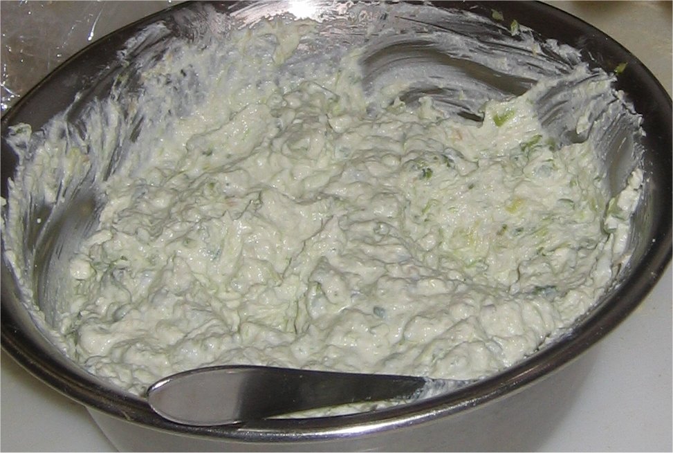 Ricotta, Brot, geraffelt, Ei, Salz mischen