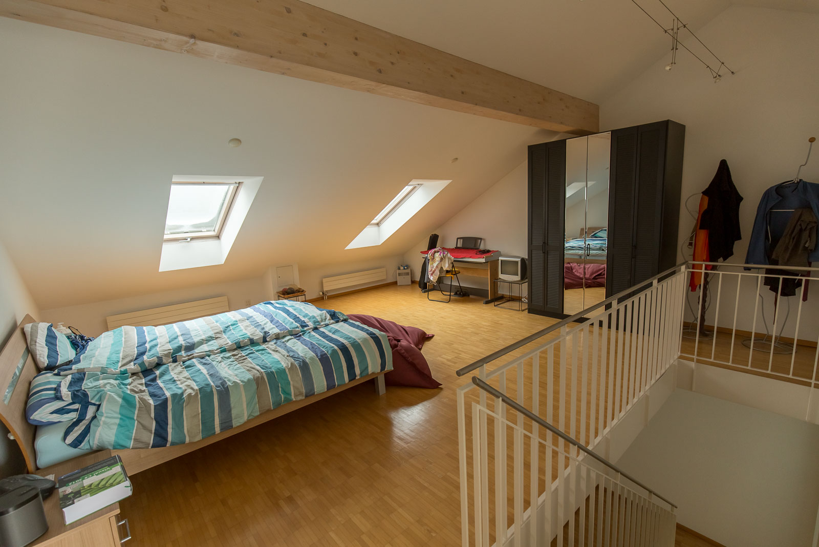 Der grosse Raum im Dach. Tisch ist schon weg, aber ansonsten ist noch alles so wie es die letzte Zeit war. Aber die neuen Möbel sind schon bestellt!